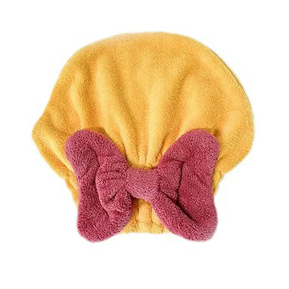 Frau trägt das HairHug Mikrofaser Haartrocknungshandtuch mit großer Schleife – schnelltrocknend, schonend und rutschfest für sanftes Haartrocknen ohne Hitze